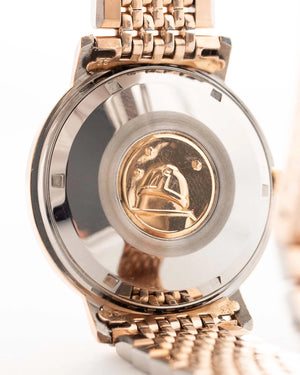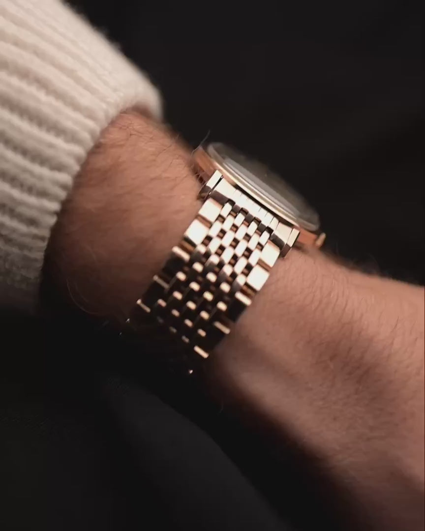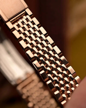 Powered by the chronometer-certified Caliber 561 automatic, this watch combines reliability with quiet luxury. And the true cherry on top: a rare, matching rose gold plated “Beads of Rice” bracelet, completing the piece with quintessential Royal grace.