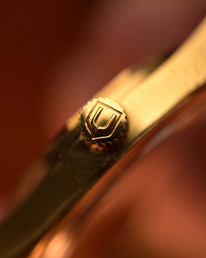 This rare Ref. 104503 represents one of the most refined iterations of the Polerouter line. The 18k yellow gold case is beautifully proportioned with slim lugs and a timeless 34 mm profile. Its untouched black crosshair dial delivers striking contrast and sophistication — a design language that feels both vintage and contemporary.