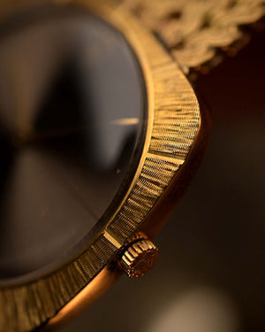 The (Pre-Cellini) line showcases the elegant, dressier side of the brand — far removed from its sporty siblings. This rare Ref. 3735J comes in a beautifully proportioned square-shaped 18k yellow gold case, an uncommon shape in the catalog and a true design gem of the late '60s.