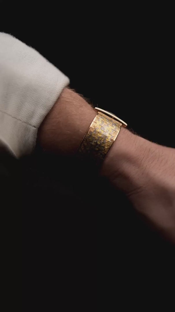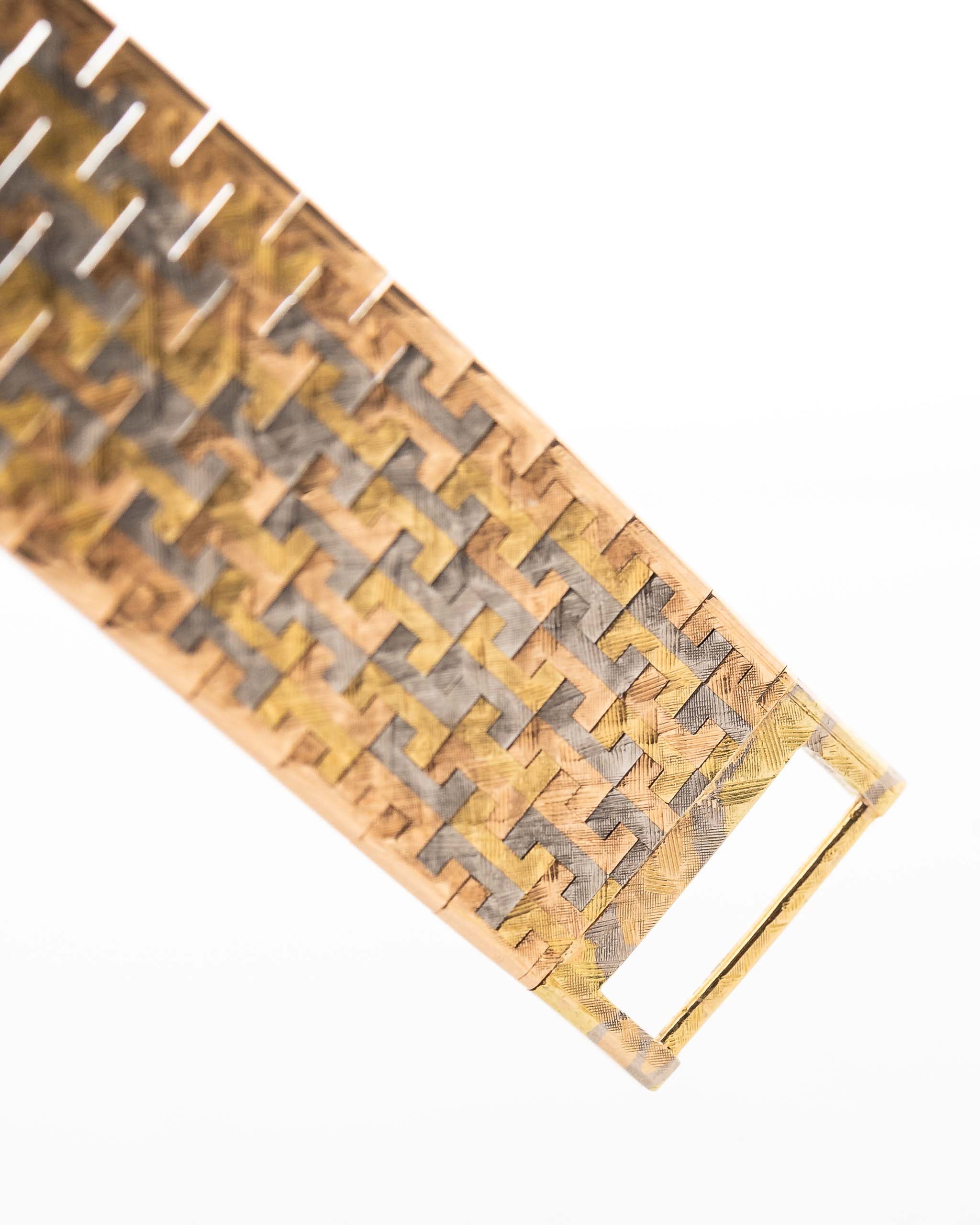 - the original integrated 18k triple gold bracelet is fitting up to 18 cm wrist size (not adjustable, only through Goldsmith) / 1.8 mm thick